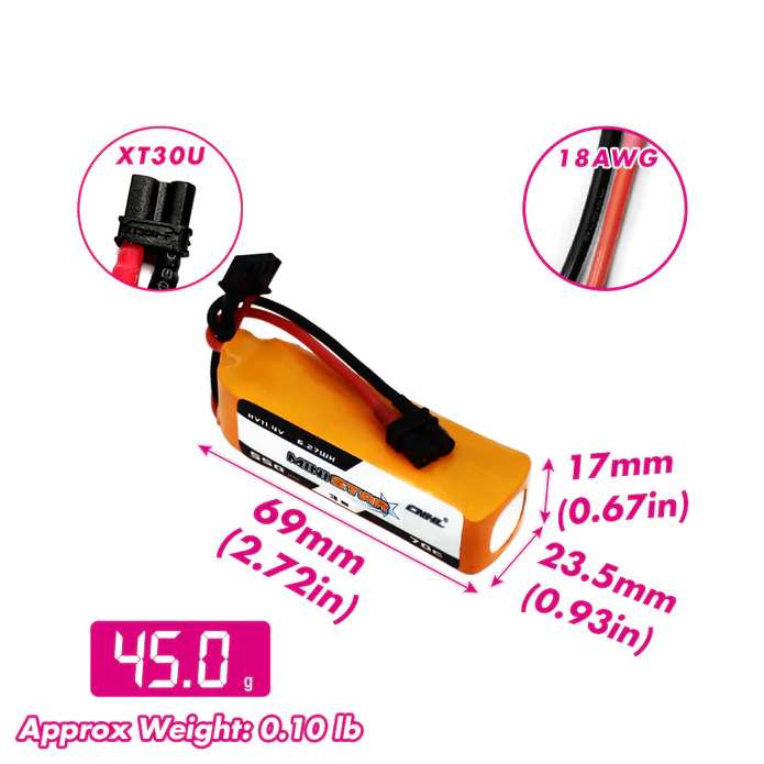 - Package: 3*CNHL MiniStar HV 550mAh 11.4v 3s 70c Lipo Battery With XT30U